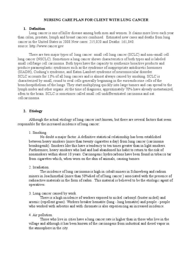Nursing Care A Client With Lung Cancer Lung Cancer Cancer